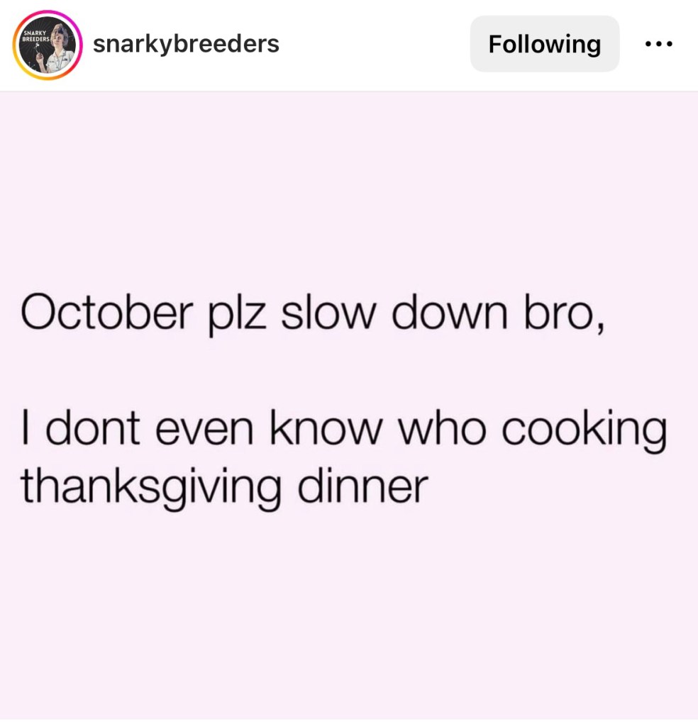 How is it already the last week of October? You know if I’m sharing memes, it’s got to be the end of the month.