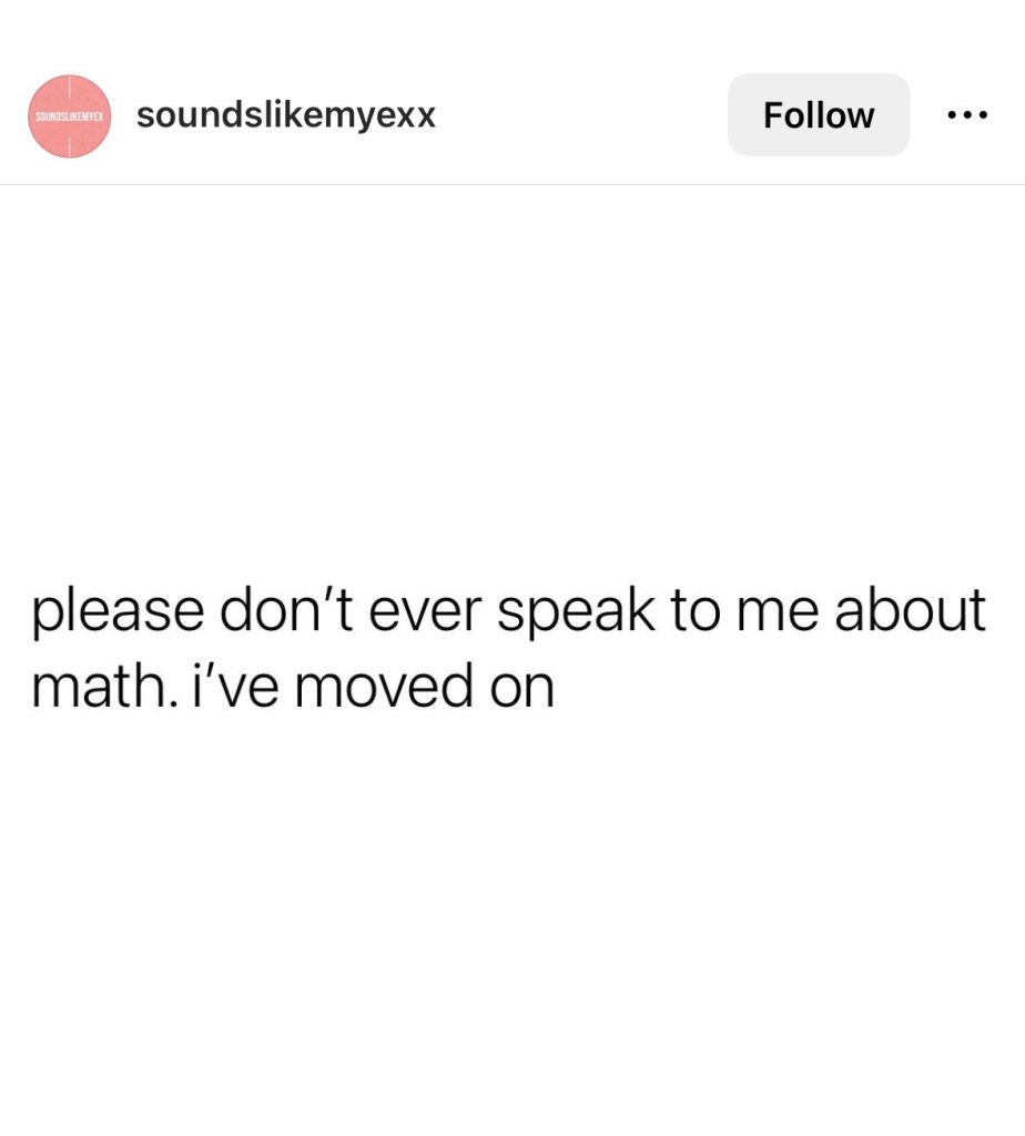 I share an Advisory class with a math teacher, and I always show him these math memes. I’m an English teacher for a reason!