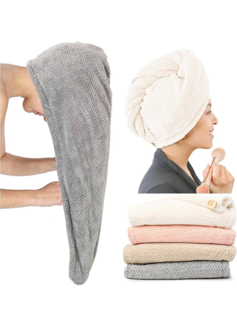 I thought these towels would be perfect so she doesn’t have to use two bigger towels after she dries off in the shower. She’s been using this hair wrap towel, and it’s been perfect.