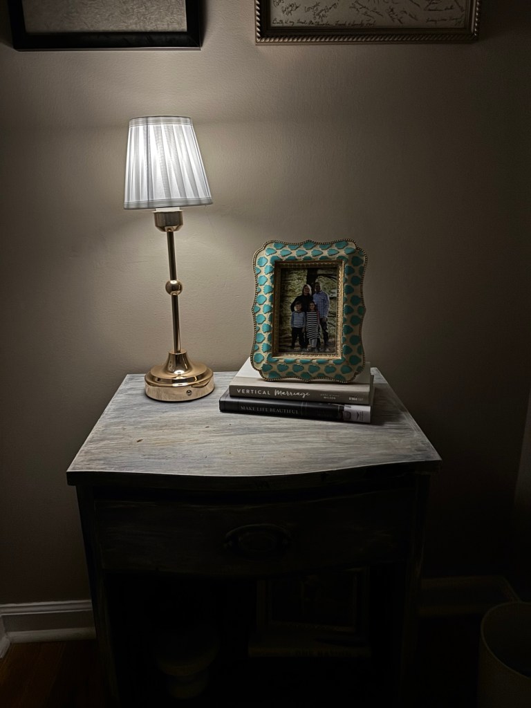 We have a couple of spots in our house where a lamp would be perfect, but we don’t have an outlet. Tina (@to_mimishousewego) has shared this lamp quite a few times, and I finally bought it.