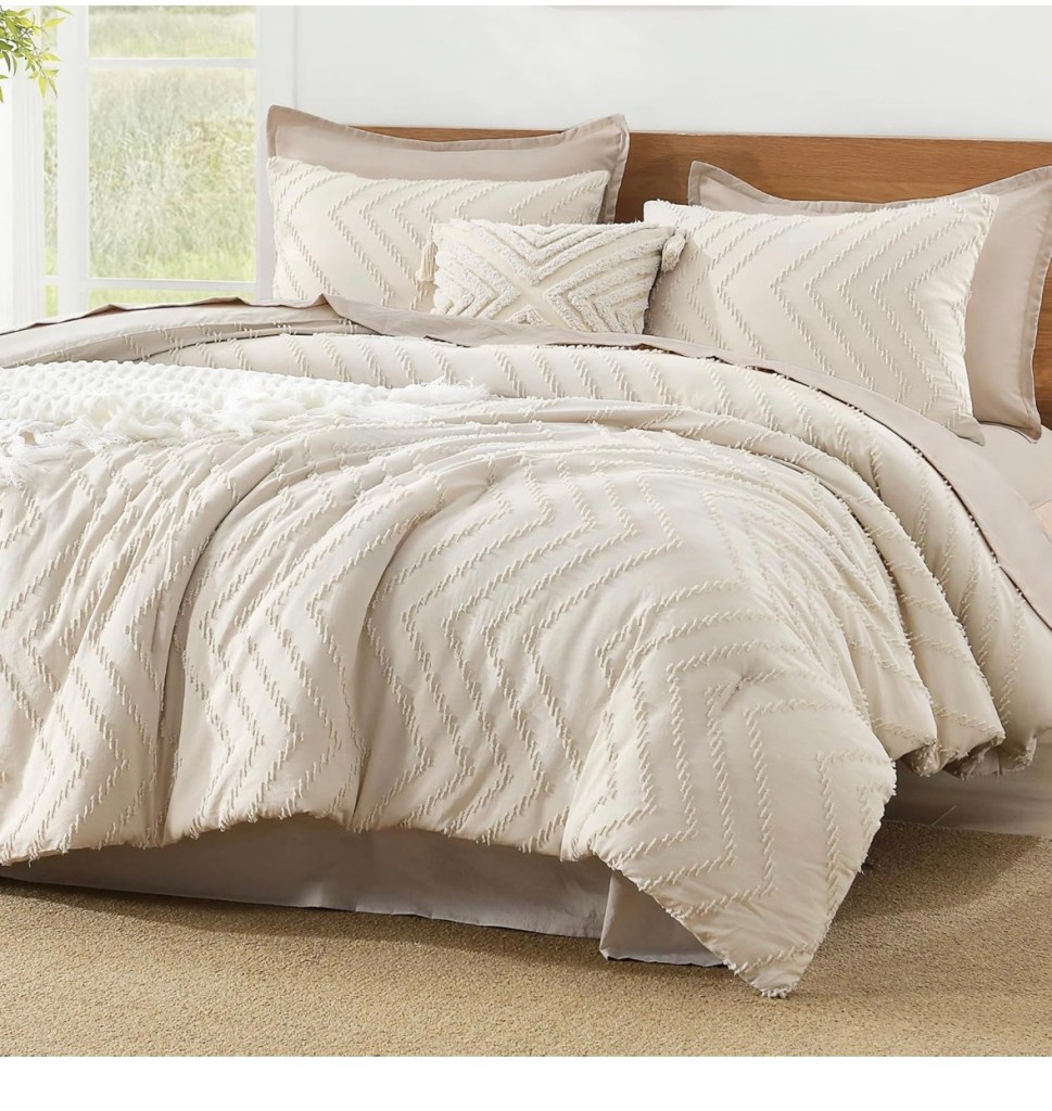 The past couple of times I’ve gone to KC and stayed at my dad’s, I’ve wished he had a comforter for the guest bed instead of just a quilt. I like a comforter/more weight when I sleep. I’d made a note to see what I could find before our summer visit, and this comforter is perfect!