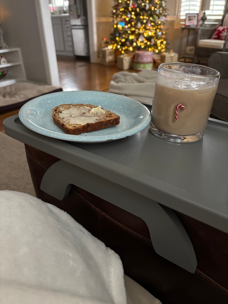 Then, it was breakfast and coffee time. I don’t usually eat breakfast, but I do on break. It’s almost like a nice little treat. I guess I should put up my festive icon glasses, but I’ve still been loving my iced coffee. Also, Hadley got a towel warmer for Christmas, and I used it to warm up my blankets last week. It’s the little things!