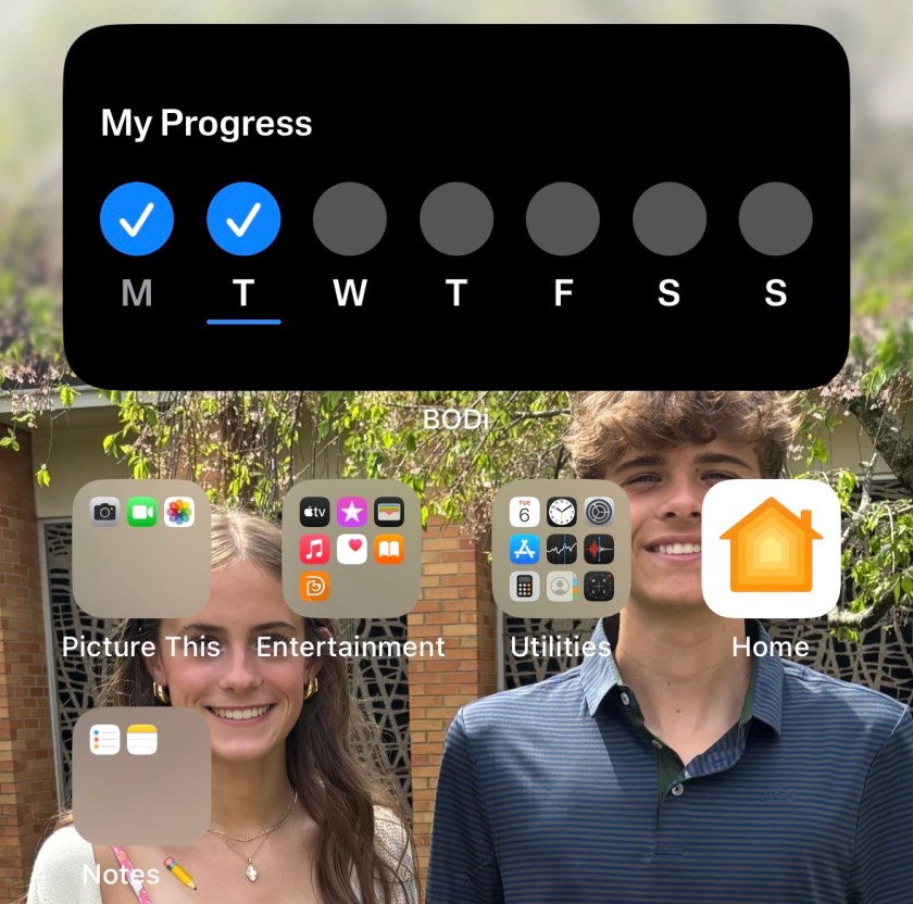 I also realized Bodi has a widget, and it’s been pretty motivating to see my workouts as the app tracks them.