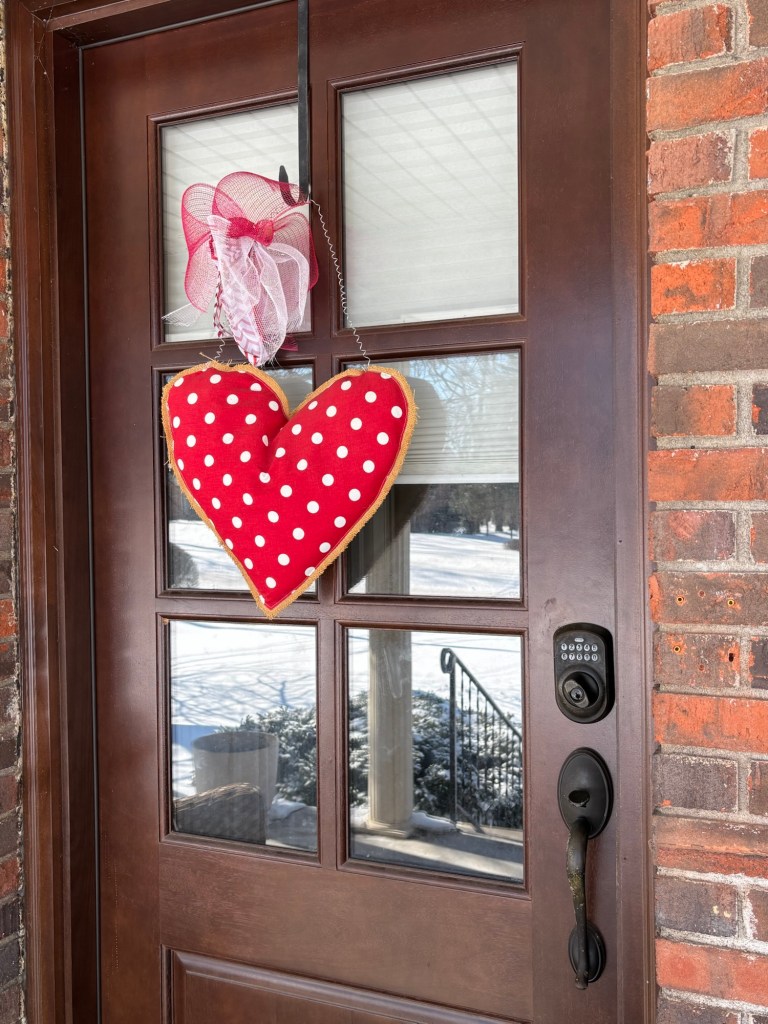 I love this door hanger. I’ve had it for years, and I think it’s a nice festive touch for February.