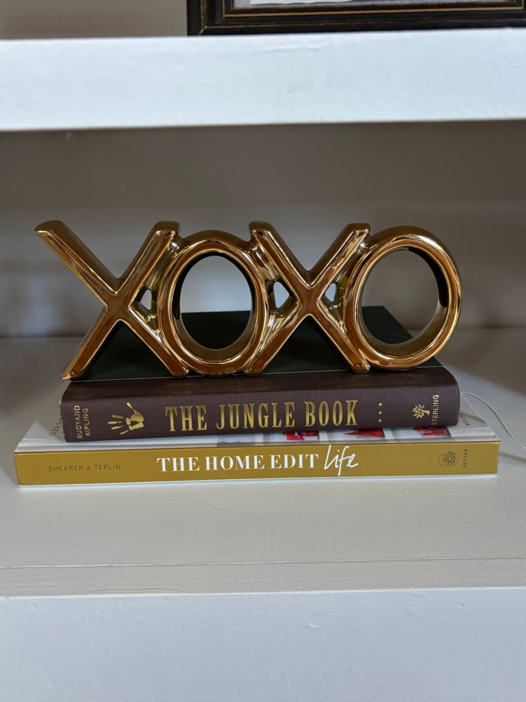 This XOXO is another decorative item that I’ve had for years. It sits on the bookshelf in the living room.