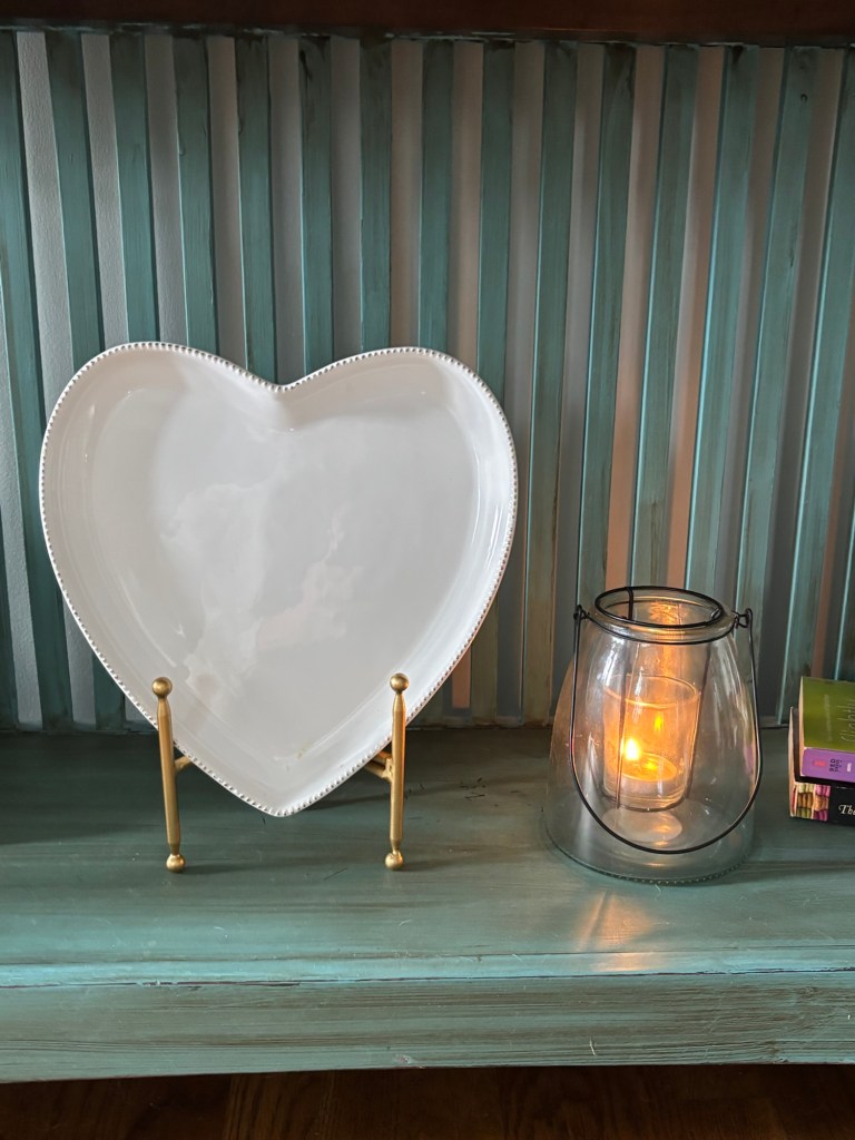 I’ve had this white ceramic heart for years, but I did get a new plate/art easel at Michael’s. I wanted something a little sturdier, and I love the touch of gold.