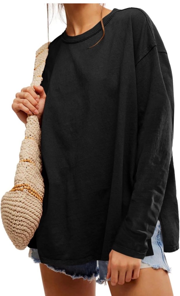 So, over break, I cleaned out my closet and got rid of quite a few t-shirts. One thing I’m lacking is casual long sleeve t-shirts, and this one has been the perfect addition to my closet. When I ordered it, I wasn’t sure if I’d wear it with leggings or not. While I can, I do think it will be more of a shirt I wear with jeans, pants, or shorts. I love the slouchy fit, the side slits, and the price! It comes in lots of colorways. Just this weekend, I wore it with my cheetah barrel jeans, and it was perfect.