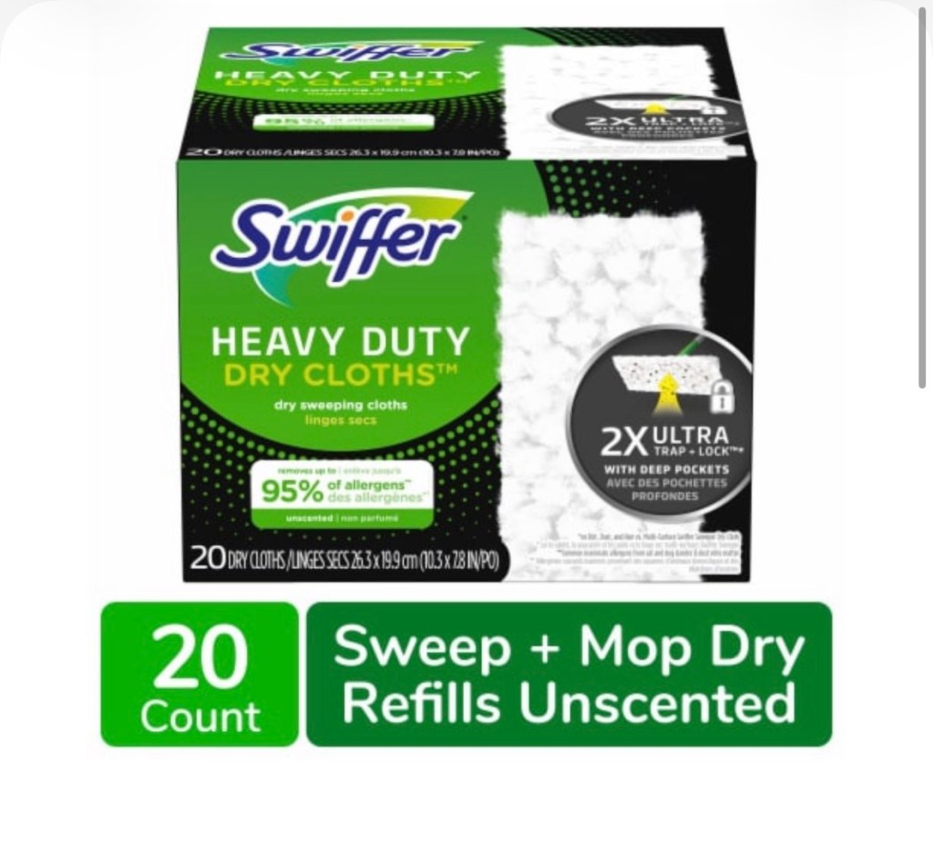 These Swiffer dry cloths. Trav uses these to sweep our hardwood floors at least twice a week. The Homer hair is real, y’all.