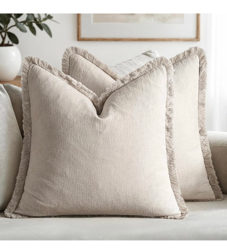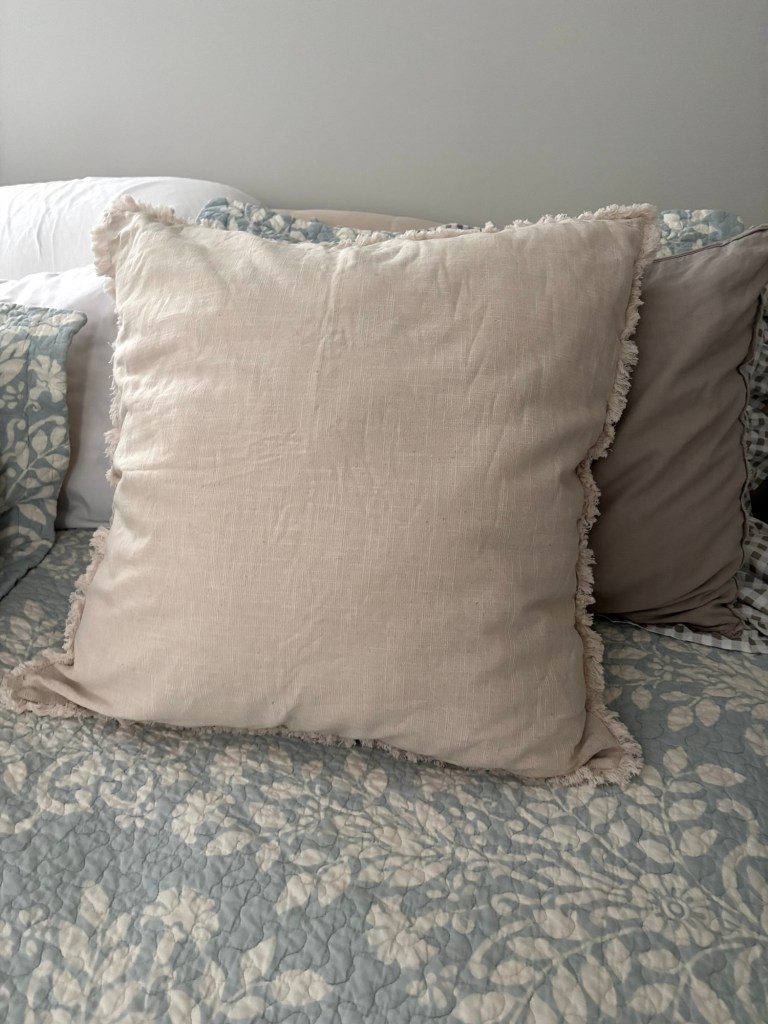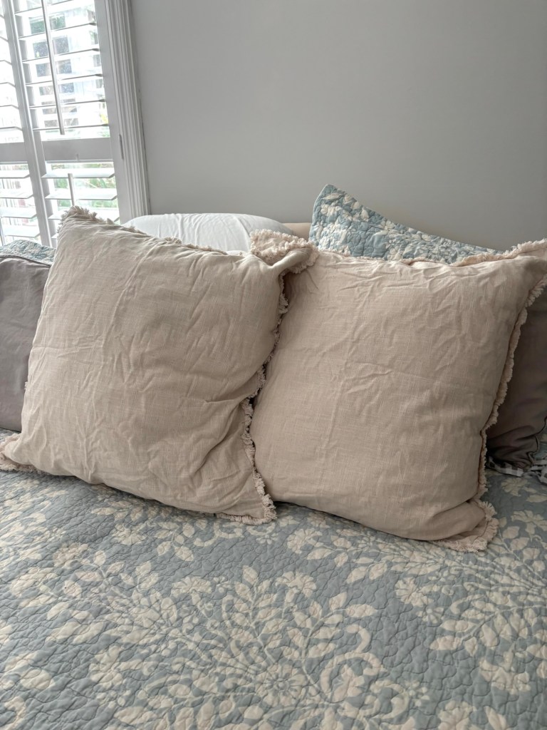 My quest to refresh a few areas continues. I’ve loved the Euro pillows we’ve had on our bed for almost six years. I’ve washed the pillow covers many times, and they’ve held up nicely. That being said, I wanted a more neutral color and something with texture, and these pillow covers were exactly what I was looking for.