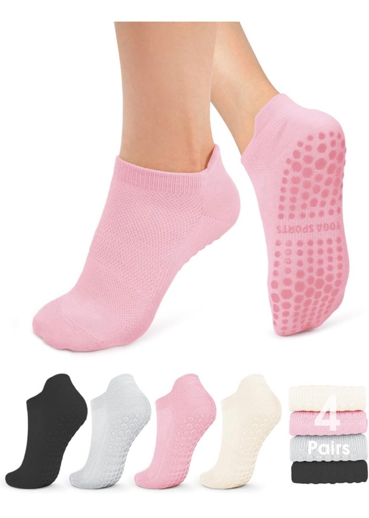 I purchased these grippy socks to use for Pilates. I hate having hot feet and wearing socks, but in the winter, that’s a different story. This set has worked out perfectly.