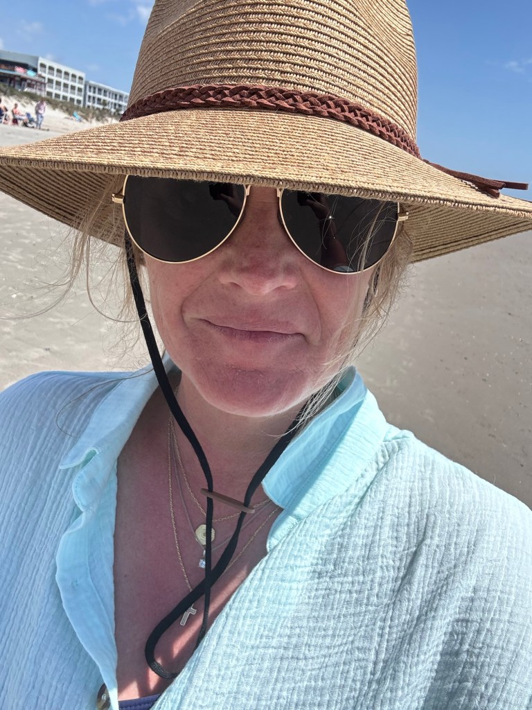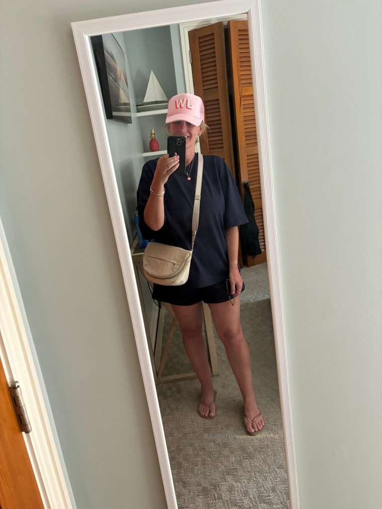 Here it is before I walked out the door. My Lululemon crossbody purse is perfect for vacay as it holds a lot, but it’s not too big. My JW hat is from an Etsy shop, SoLillyDesignCo, and I got it earlier this summer. My fave flip flops are the Haviana brand from Nordstrom.
