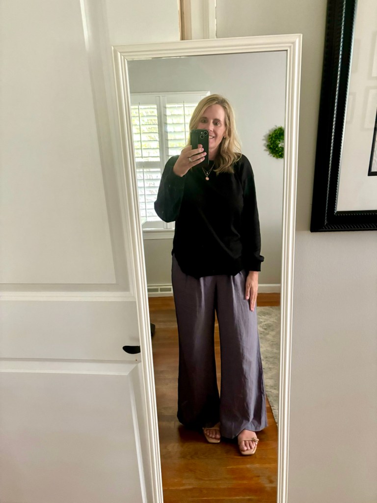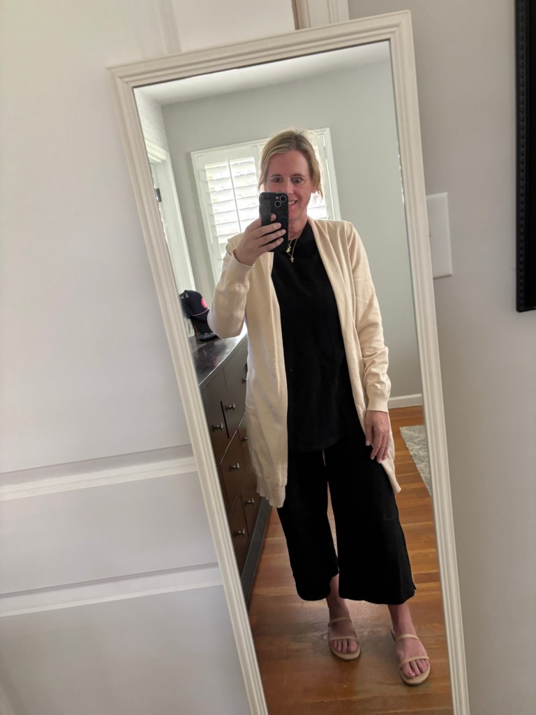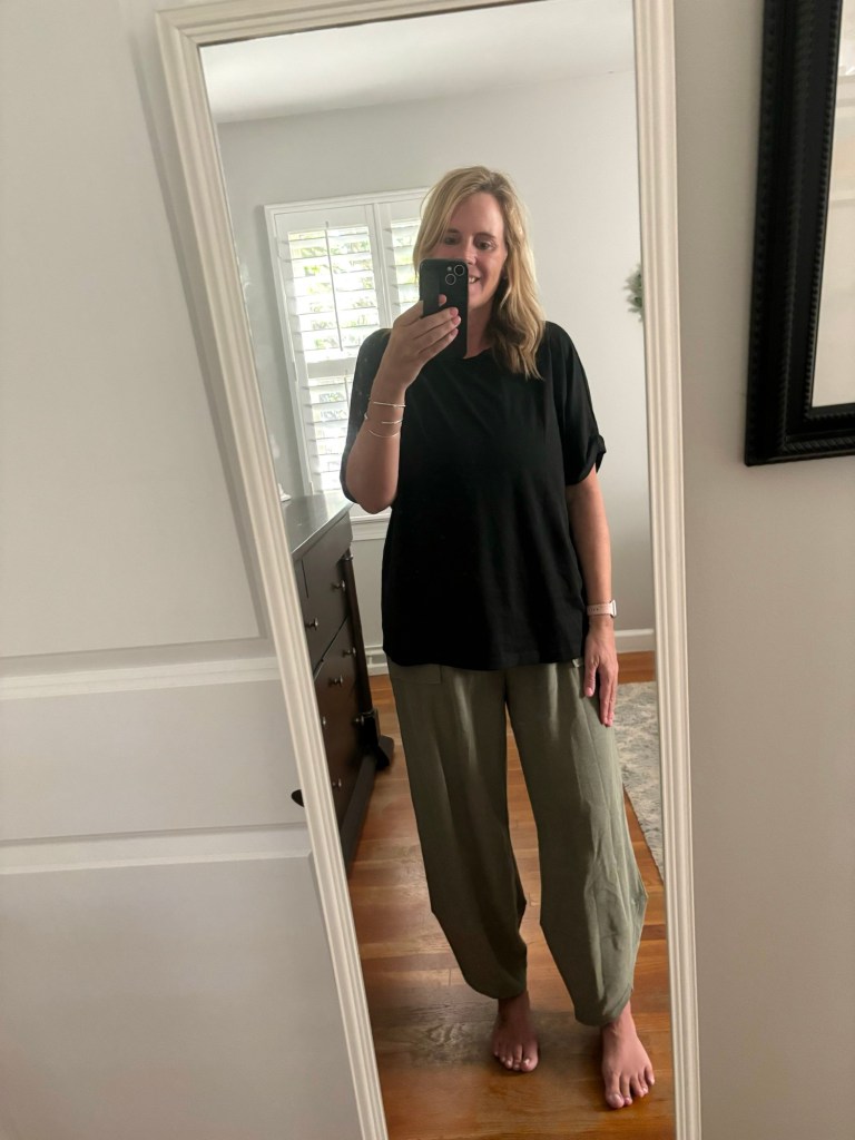 On Monday, I wore these linen pants and lightweight black sweatshirt, both from Amazon that I’ve had for a while. I got so many compliments on this outfit…(and my tan), that I figured it would be a good outfit to share.
