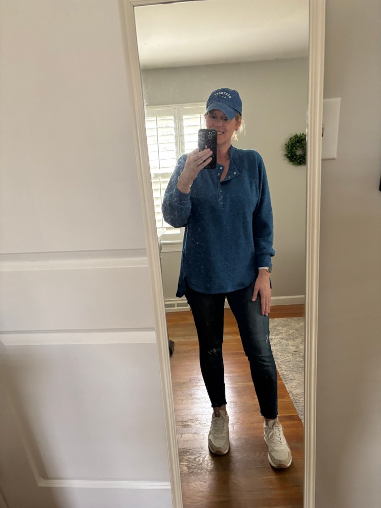 When we went to the pizza place with friends a couple of weekends ago, I wore this super soft Henley that I bought on a Saturday Steal deal.
