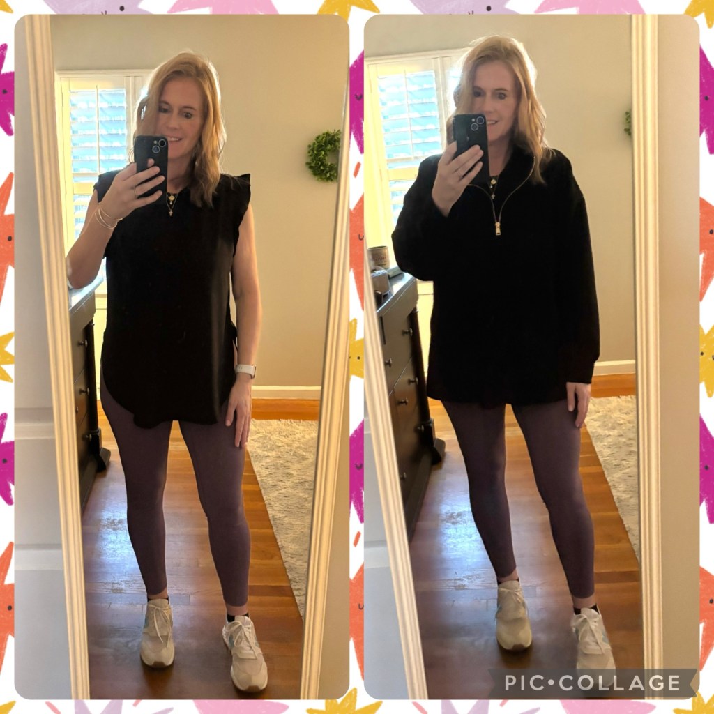 Also, now I’m very comfortable with sizing for their label pieces. Overall, I’m a size large from tops to leggings. There are some things that have some room, for example, the Lucy and Ainsley pullovers that I’m guessing a medium would work too….but just depends on how I’d want to style them. With the Ainsleys, I’d want to wear them with leggings mostly, so I’d want them to cover my rear.