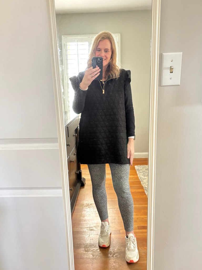 On Monday, I wore one of my absolute favorite SSYS items. This pullover was one of the first, if not the first, label pieces they designed. Now, they name all their items, but this OG one doesn’t have a name. It’s perfect to wear with leggings, but I’ve also worn it with jeans. I’ve worn this so many times over the past three years. They’ve made other iterations of it as well, but the thicker quilted fabric is nice to wear in the fall and winter. For example, the new fabric is lighter weight than the original.