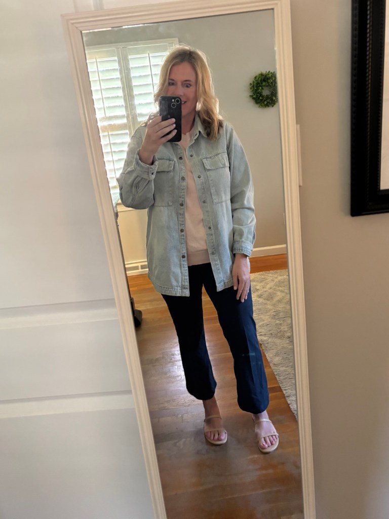 Here are the cropped Amazon pants again with a Universal Thread chambray top from Target that I’ve had for years.