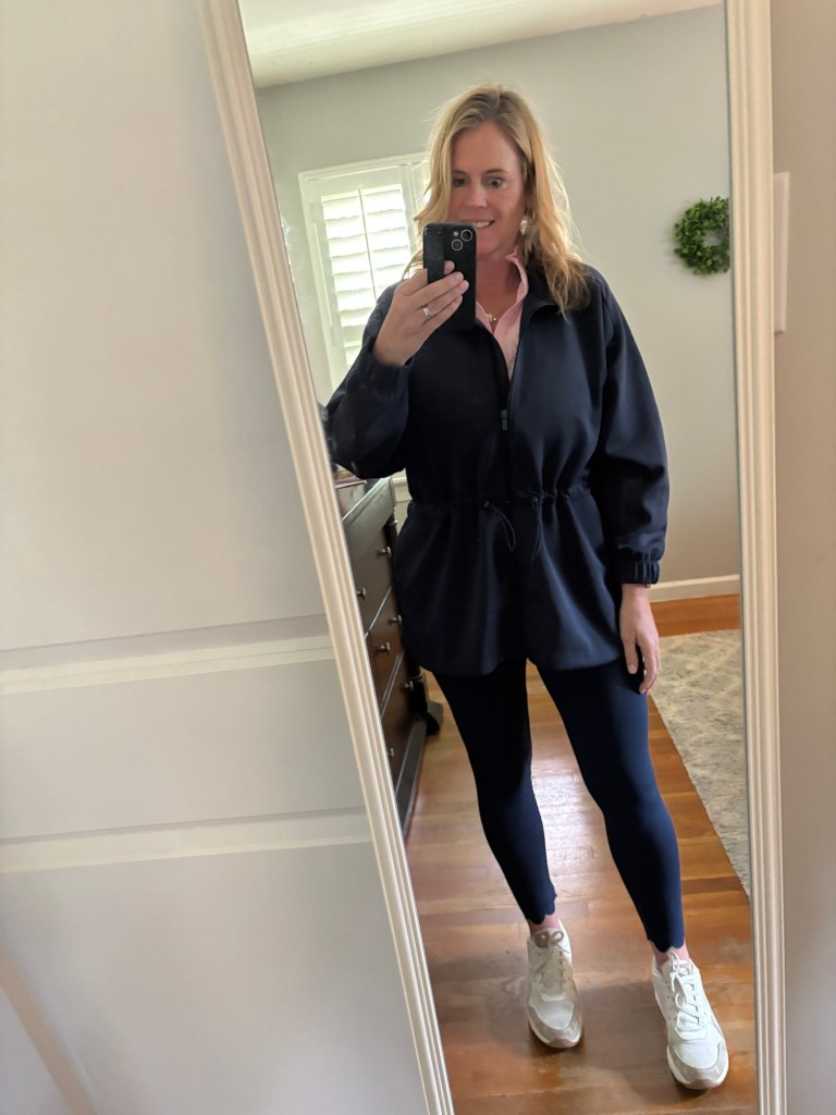 I wore this Target jacket last weekend, and it’s so comfy and perfect to wear with leggings.