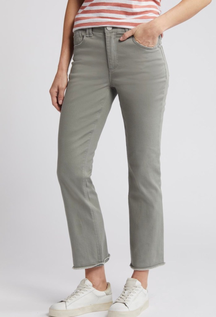 I rarely buy clothes from Nordstrom, but I have purchased quite a few things through the years. Their Nordstrom sale wasn’t even on my radar, but I saw an ad on Instagram for these Wit and Wisdom flare frayed jeans…the “ab” solution fit..and the waist has good stretch. I have a pair of the “ab” solution jeans, so these caught my attention. Also, I like a cropped/shorter pair of jeans. Anyway, I purchased two pairs of these…deep sea grass and ecru, and I know I will get a lot of wear out of them…even wearing them to school.