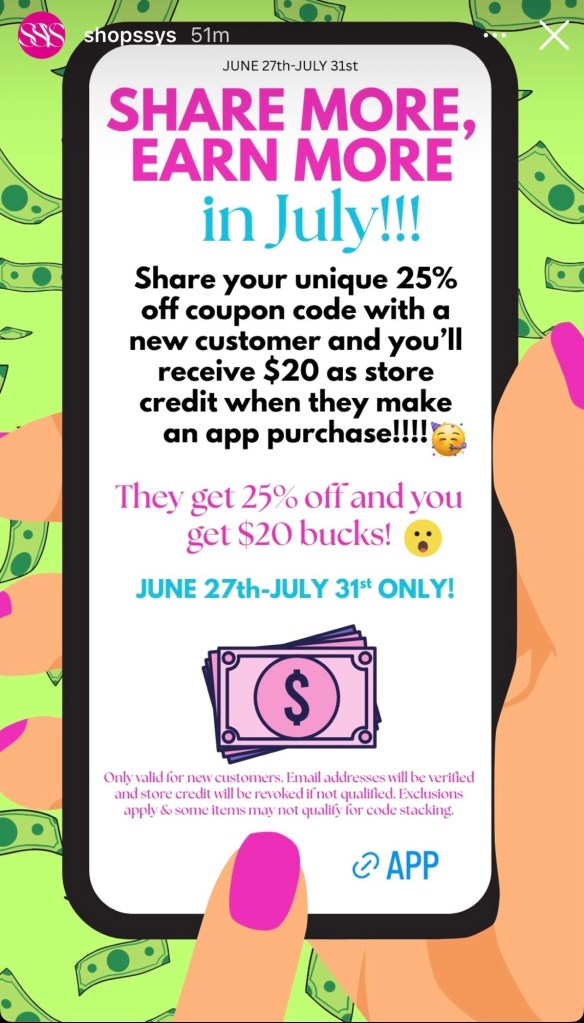 If you’ve never ordered from SSYS, now is the time. I’ve never tried to be a major influencer…this blog is for fun, but I think it’s so neat that I have the opportunity to share about a shop that I love, you get 25% off your first purchase using their app, and I can earn $20 for future purchases. It’s a win win for all.