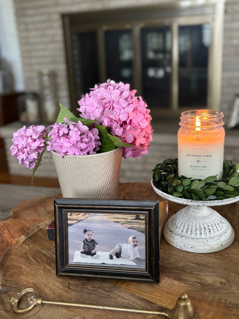 Trav told me I should snip a few blooms, so I can enjoy them in the house, and that’s just what I did. The pink is so pretty, and hydrangeas are one of my fave flowers.