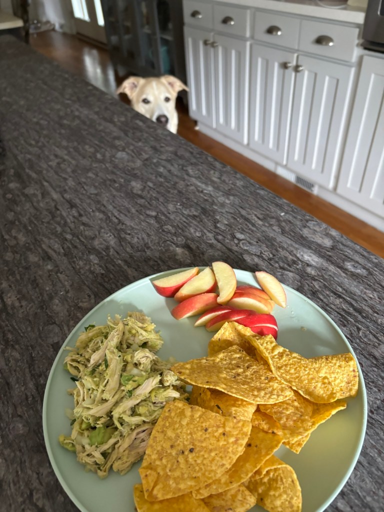 I made a batch and had some for lunch both of those days with this chips and and apple and peanut butter. Homer really wanted some too!