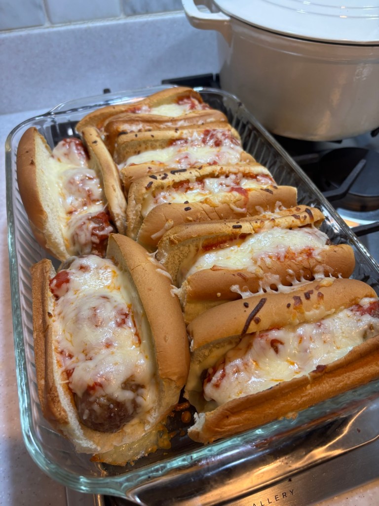 Lastly, I was trying to find an easy meal to make on Wednesday, and I stumbled upon these meatball subs. I just knew Hayden and Trav would love them, and they were a hit! I ended up buying mini hoagies which held three meatballs…perfect! These will also be added into the dinner rotation!