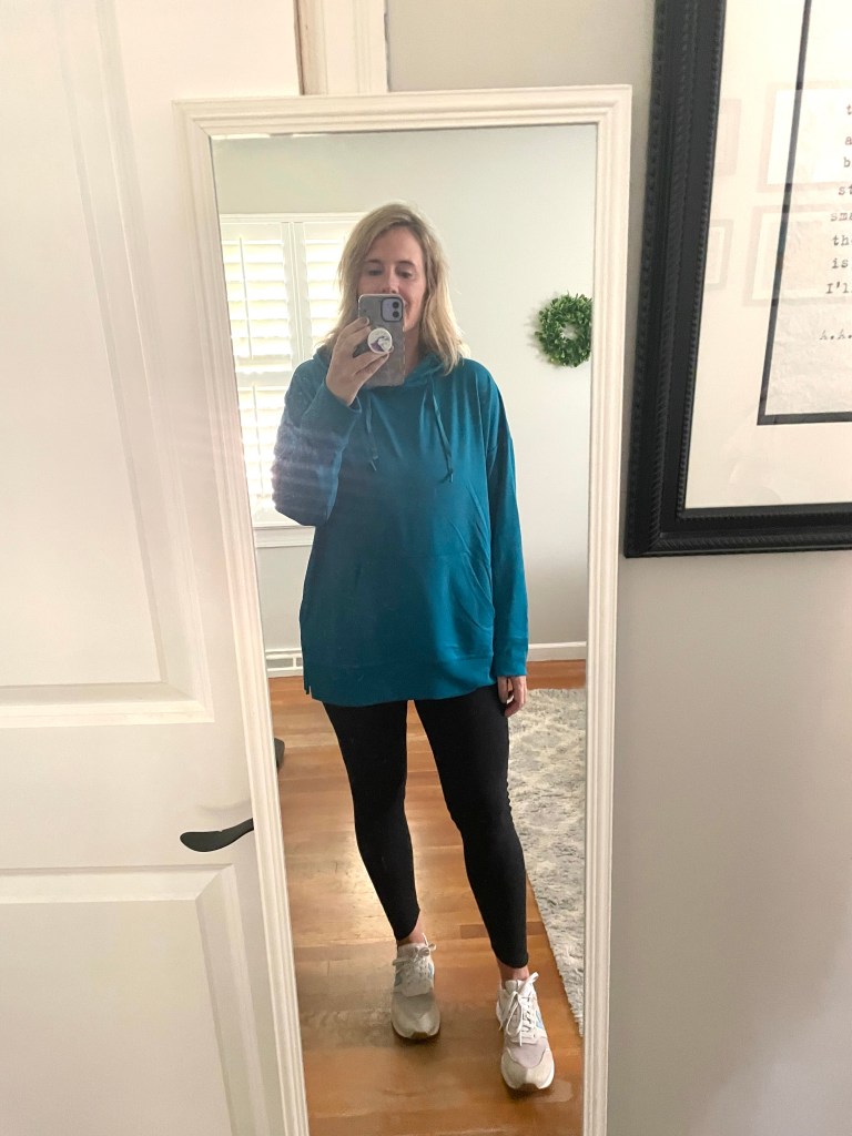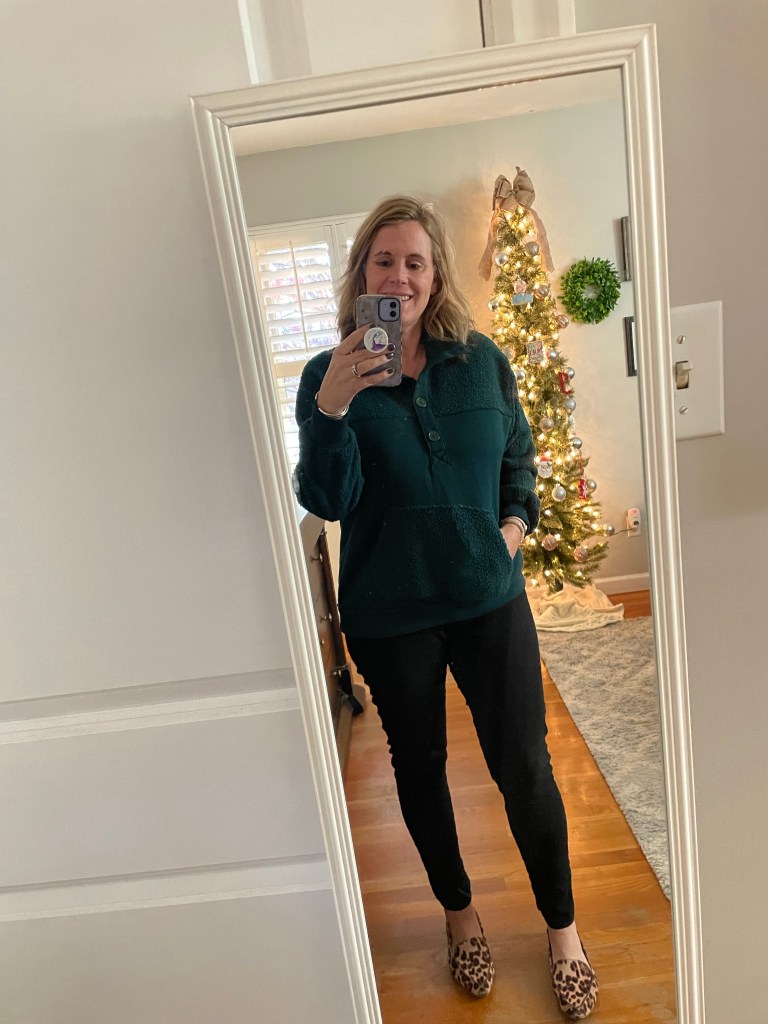 I forgot to snap a pic on Friday, but I wore jeans and school shirt. As soon as I came home, I threw on leggings and a sweatshirt before we went to dinner at Buffalo Wild Wings.