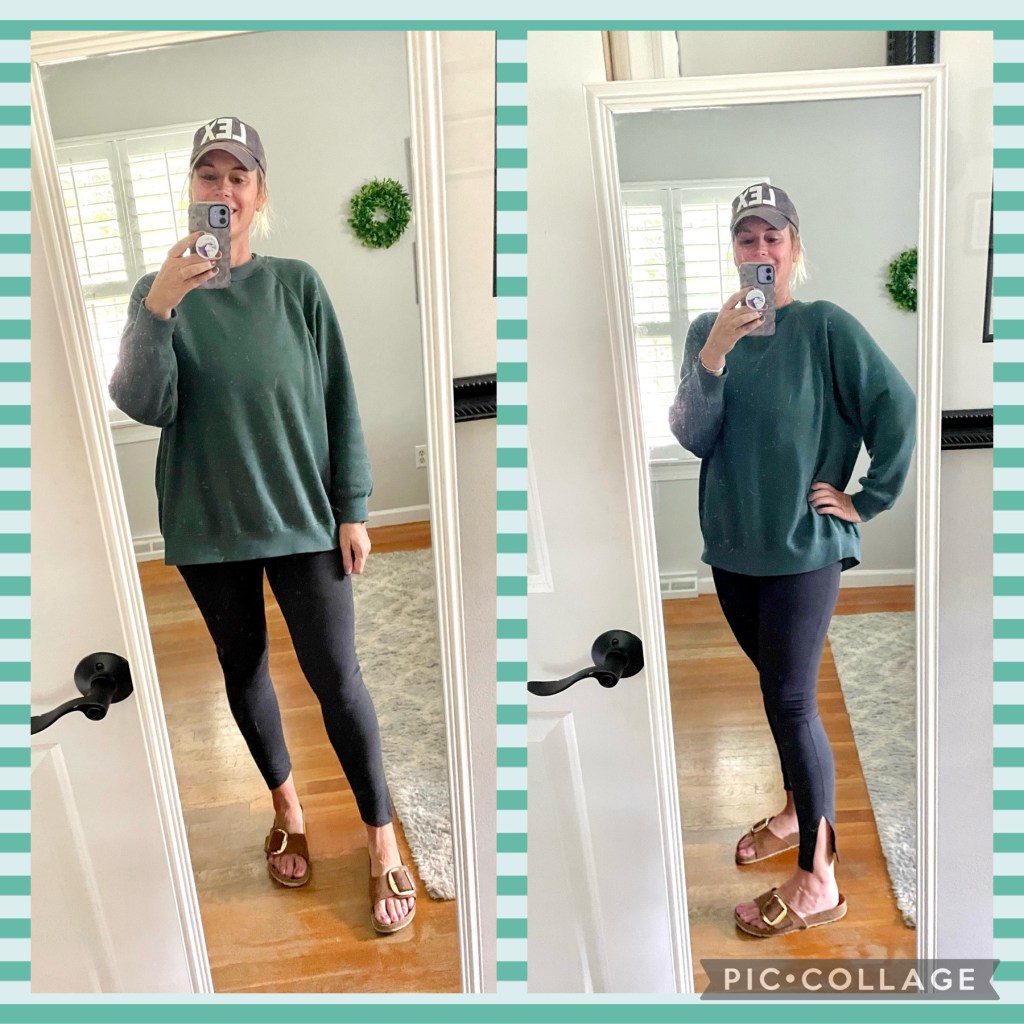 Sunday, when I went to run errands with Hadley, I wore my typical “momiform” of leggings and over-sized t-shirt. This is another one from SSYS, and it feels like butter.
