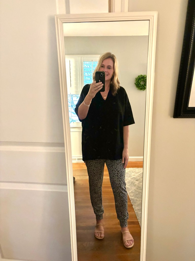 Yesterday, I had a hair appointment after school, so, again, I knew it was going to be a long day and I wanted to be comfy. I wore these joggers with the same black SSYS top from Sunday and sandals.