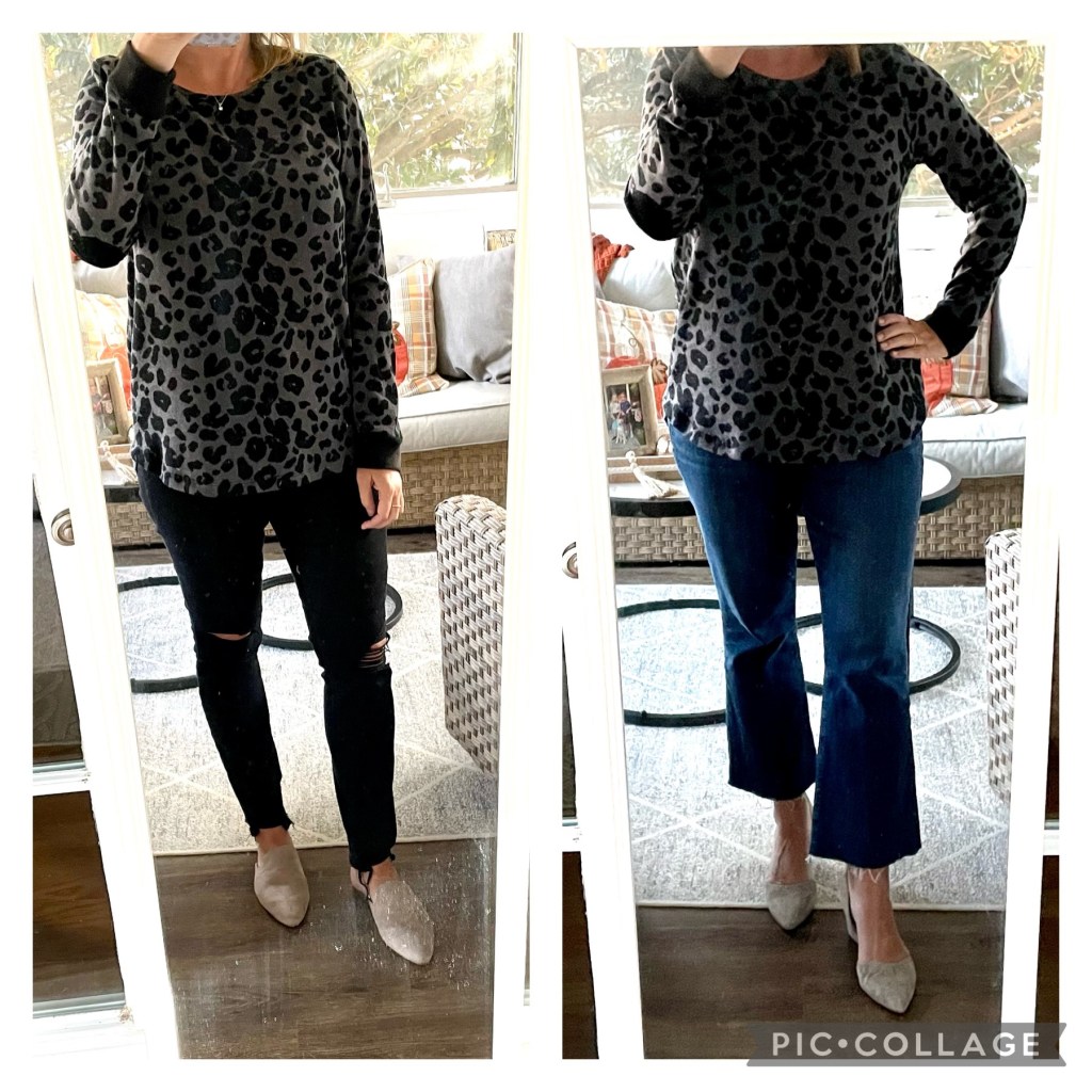 Leopard shirt two ways! This shirt is from Stitch Fix, and I’ve had it for a couple of years. I’ve recently paired it with my distressed black jeans from Target, that I purchased last year, and my new Amazon mules. {affiliate link}