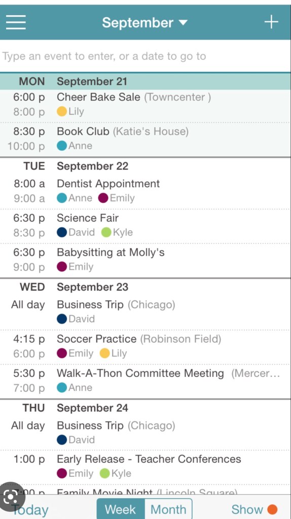 I’ve heard other busy families talk about “shared calendars,” but we’ve never done that. I kind of like keeping my phone calendar to myself because I have so many reminders and other things I put in it. This app, being separate, has been really nice.