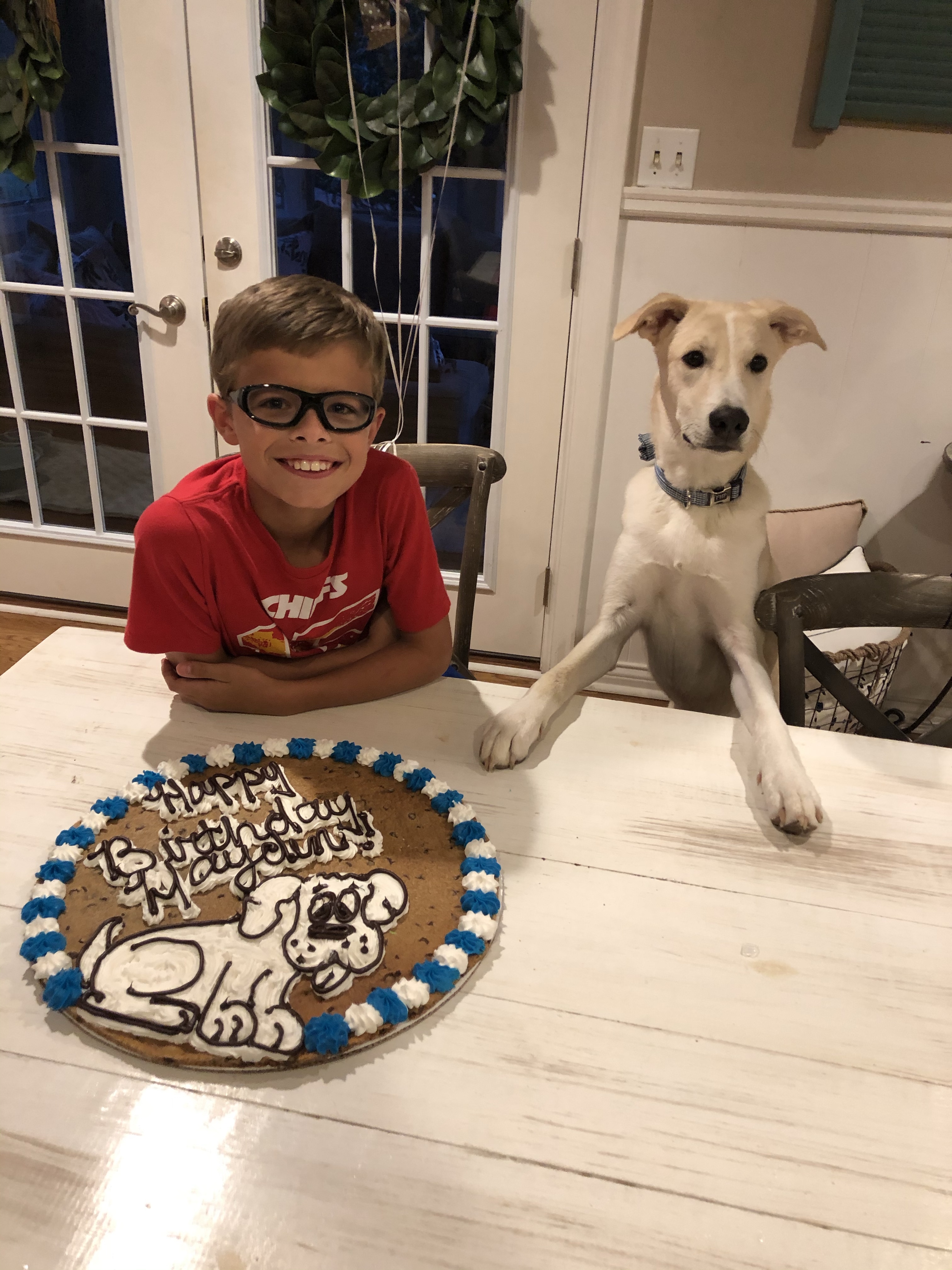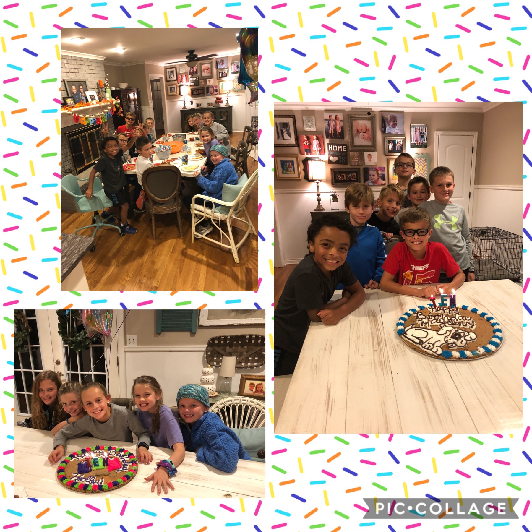 Kids are easy to please—pizza, chips, Capri Suns, and cookie cakes. I had picked up the T E N candles to use for the family party, and they came in handy as a back up.