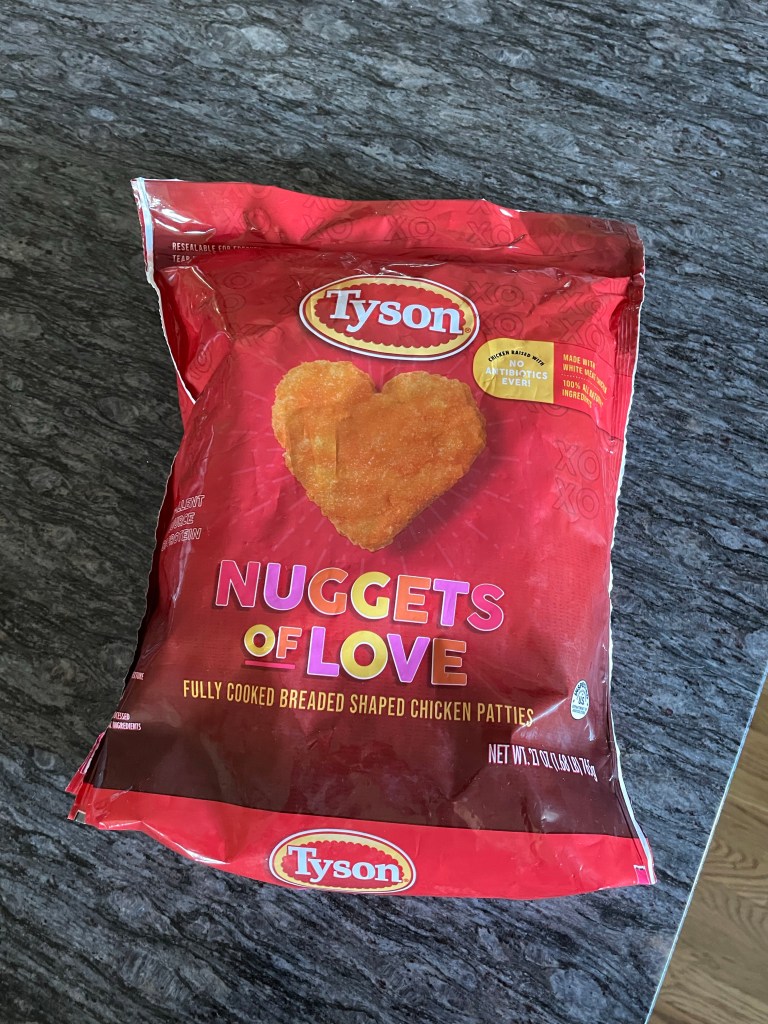 Then, for dinner, we had heart shaped chicken nuggets and mac and cheese. An easy and delicious dinner made us all happy.