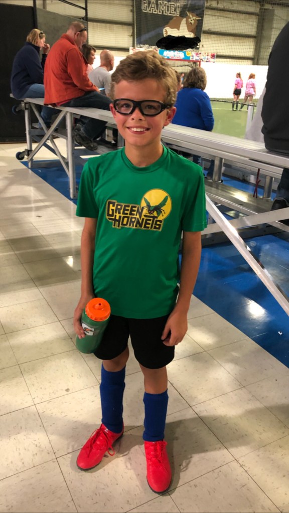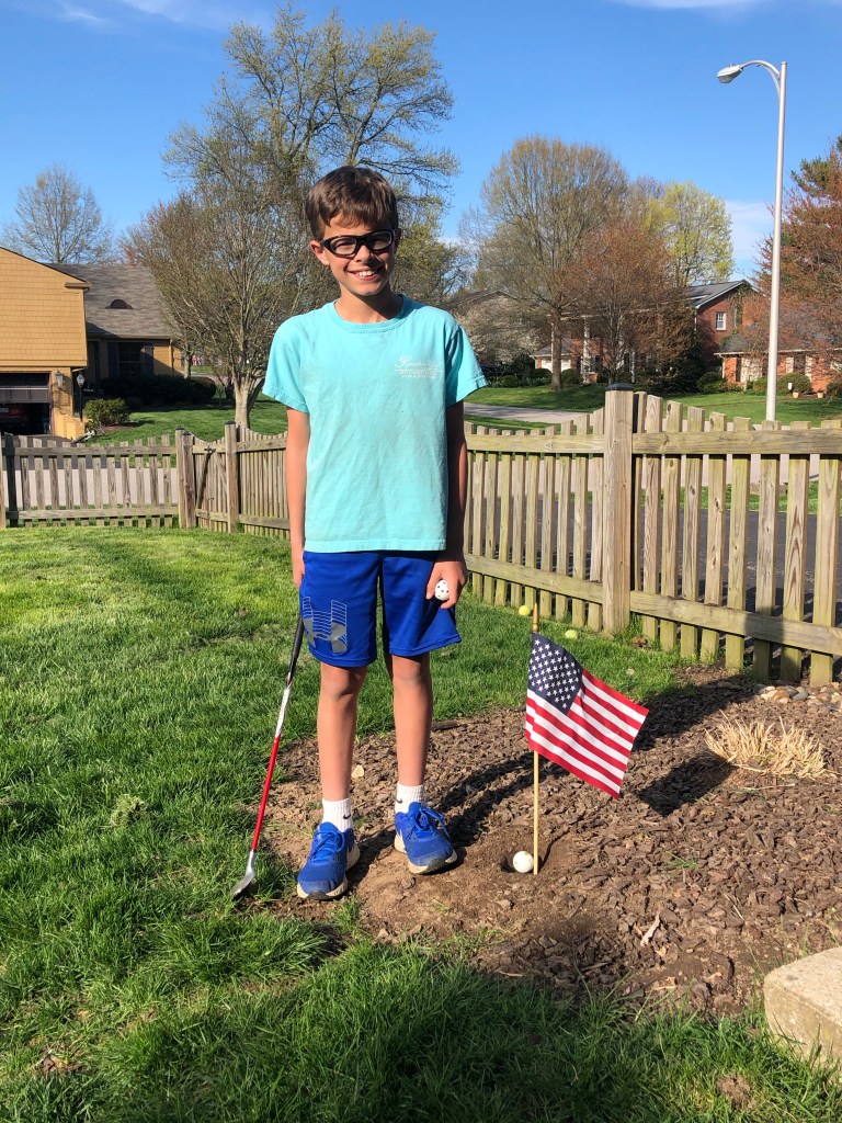 Hayden “played” golf a bit in the backyard. He really started liking golf last summer, but then other sports kind of took over as usual, so it was fun for him to get back at it. We learned our lesson last summer after he broke a neighbor’s window; now he uses plastic golf balls in the yard! Also, I cracked up because he used one of our decorative 4th of July flags for one of his holes!