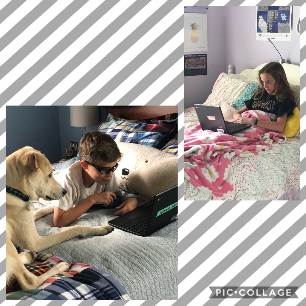 Last week, the kids had some trial runs with Google Meet with their teachers and classmates. I went in to wake Hadley (early for her—at 8:40) on Friday for her 9:00 meeting to find her still getting her beauty sleep!