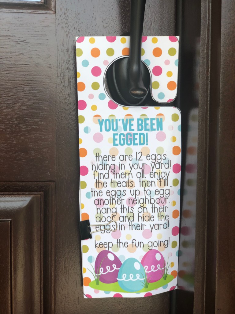 We woke up to a sweet surprise yesterday morning. We were “egged”! Unfortunately, I didn’t realize until around 11am, and some of the chocolate had melted in the eggs we found. This was definitely a fun (and sweet!) treat.