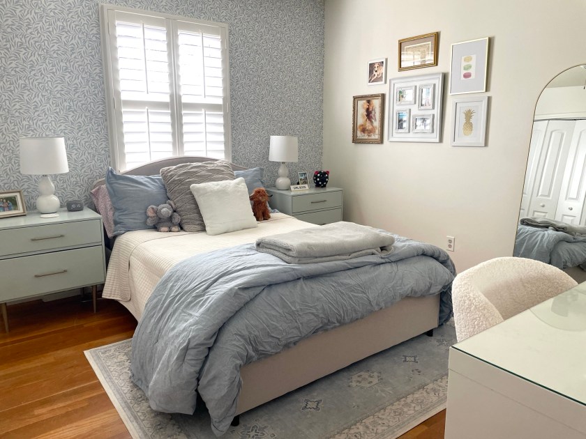 I stayed home and my friend helped put the finishing touches on Hadley’s “room refresh” by putting up the wallpaper.