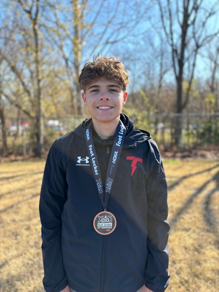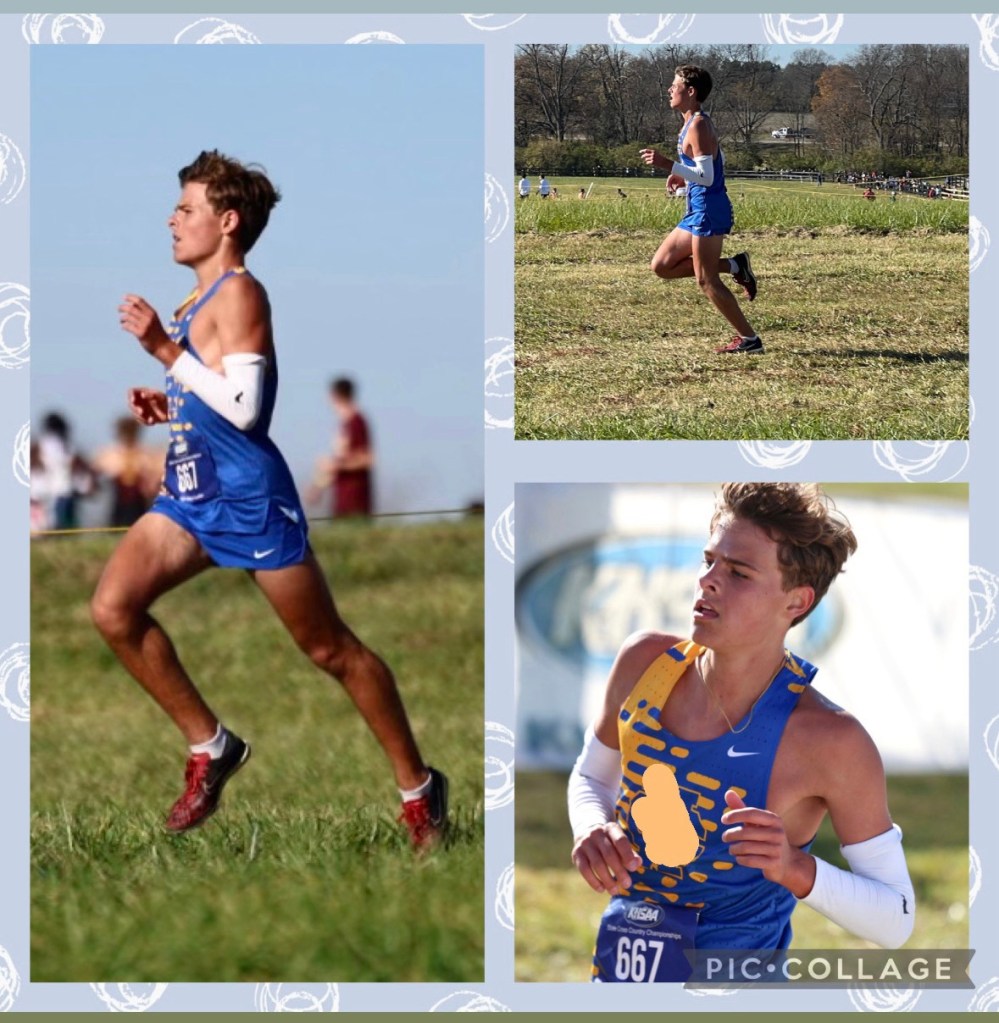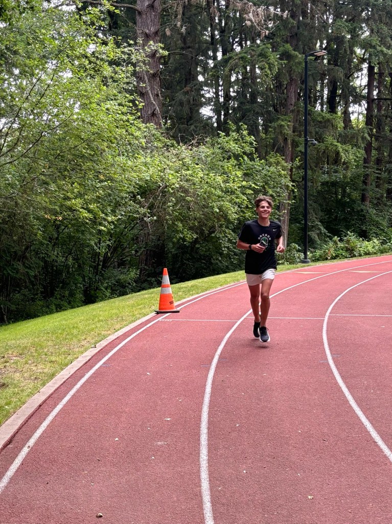 Hayden ran an awesome race in the city meet. Trav was getting over Covid, so he watched from a distance, but I got a pic with Hayden! (Then, it was my turn for Covid.)