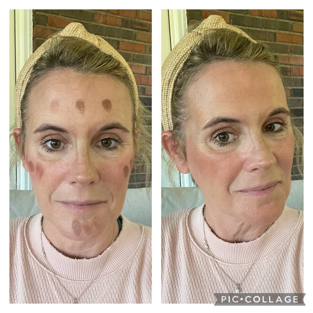 Before and after blending in the bronzer: