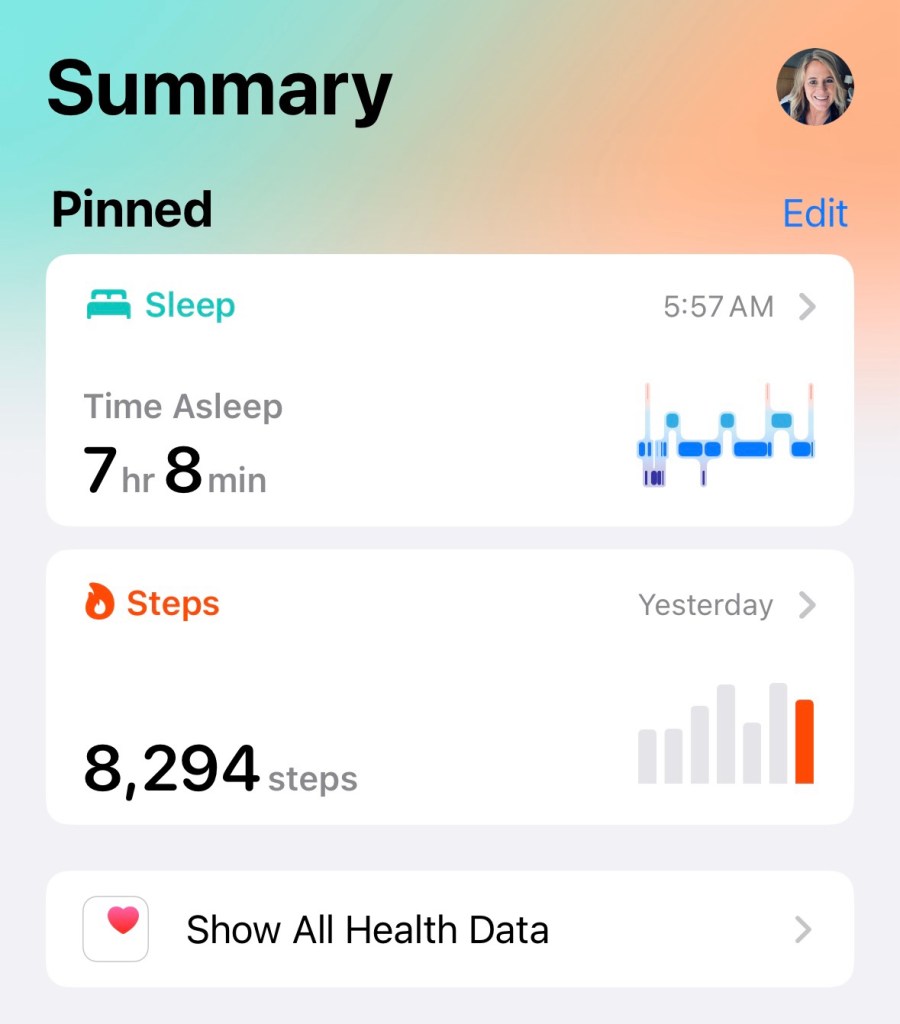 When I got a new Apple watch for Christmas, I started wearing the watch to bed to track my sleep. It is somewhat motivational for me to try and keep my weekly sleep average above 7 hoursā¦meaning sometimes I will think of that around 10, and try to get to bed. Haha
