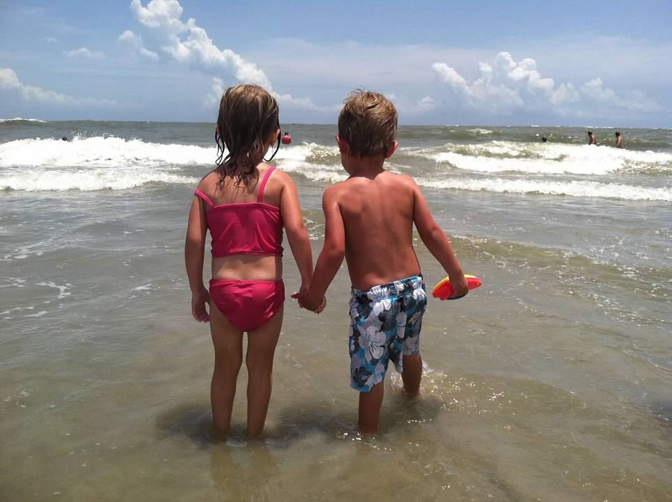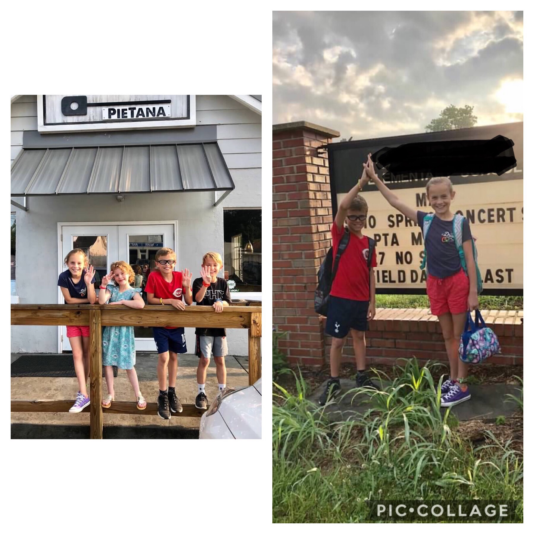 When I saw the bench, I knew I wanted to have the kids sit there again, but later noticed they put their hands in the same spots they did for the photo years ago.