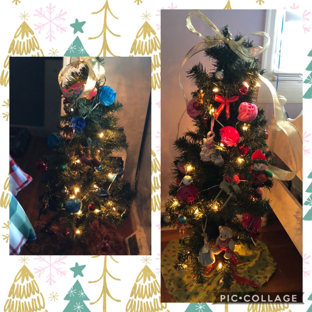 I put any leftover ornaments not used on the living room tree on the artificial tree in the sun room. I think this is our fourth or fifth year getting a real tree for the living room. Last year was the first year we put our older artificial tree up in the sun room, and I’m glad we did that again this year.