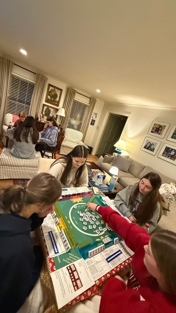 Hadley spent the night at a friend’s house on Sunday, and look at all the girls playing Mahjong! Precious.