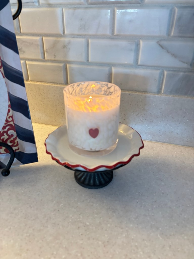 Unless I get to it sooner, I’m decorating for Valentine’s Day, but here’s one little spot that’s feeling the love!