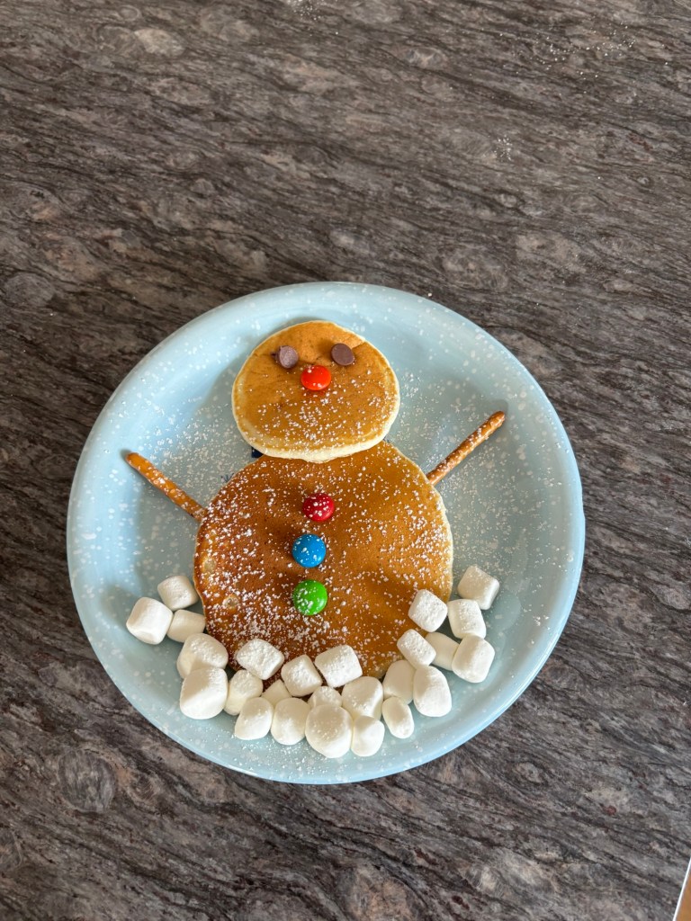 One other thing we had to eat this week was my snow day pancakes! I had the stuff to make them in December but never did. Even this week, Hadley was at a friend’s house Monday morning, so I waited to make them yesterday. While I like to make these on the first official snow day, at least the tradition continues…(although, I didn’t have any bacon for a scarf!)