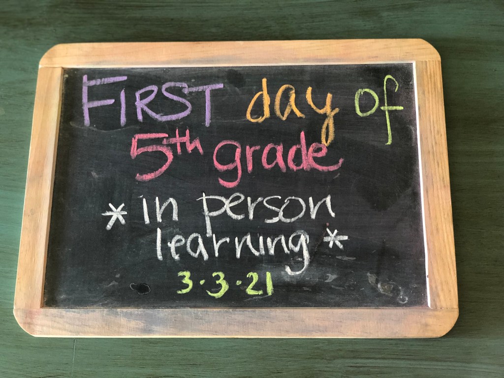 First day of in person learning, 5th grade: March 3, 2021
