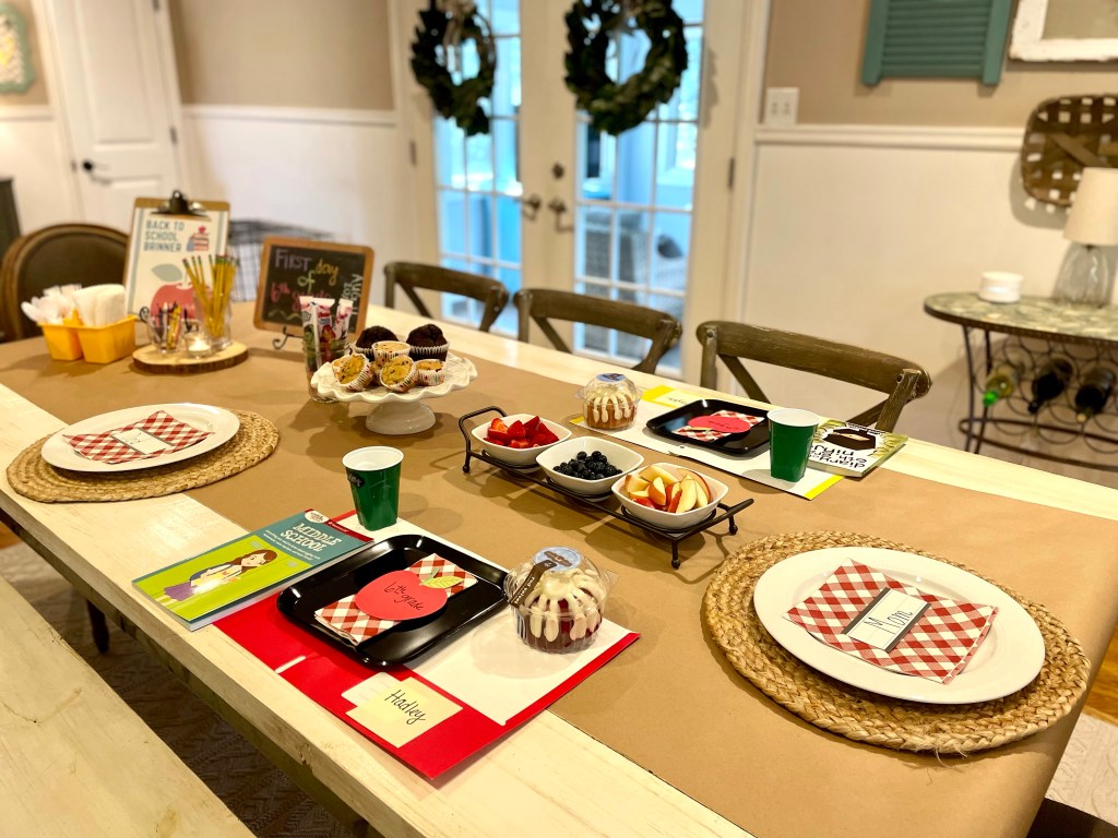 That being said, since we are talking about back to school, I thought I’d share a few more in-depth details about our traditional Back to School Breakfast on the first day of school.