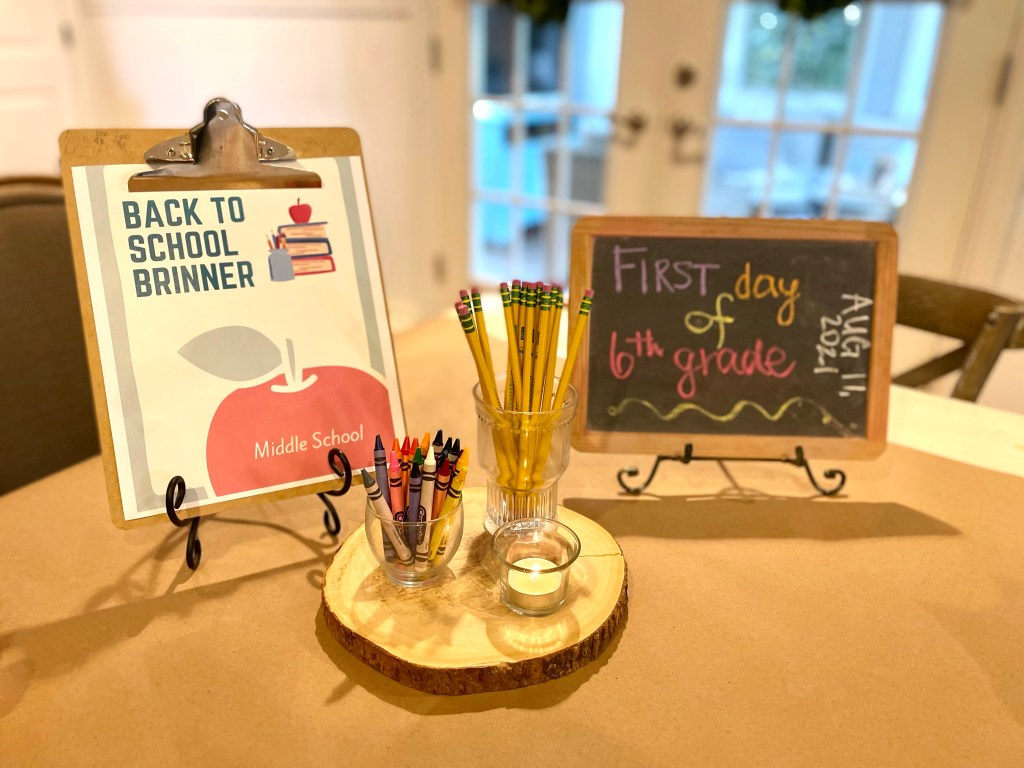 It’s hard to believe that I only have one more back to school breakfast for the kids before they start middle school. Middle school has a later start time, so I may have to use the Back to School Brinner idea because who knows what our mornings will look like once the kids are in 6th grade?! It may sound cheesy, but I always want all three of us to start the year putting our best feet forward, and I think the breakfast tradition is a great way to set the tone for the year.