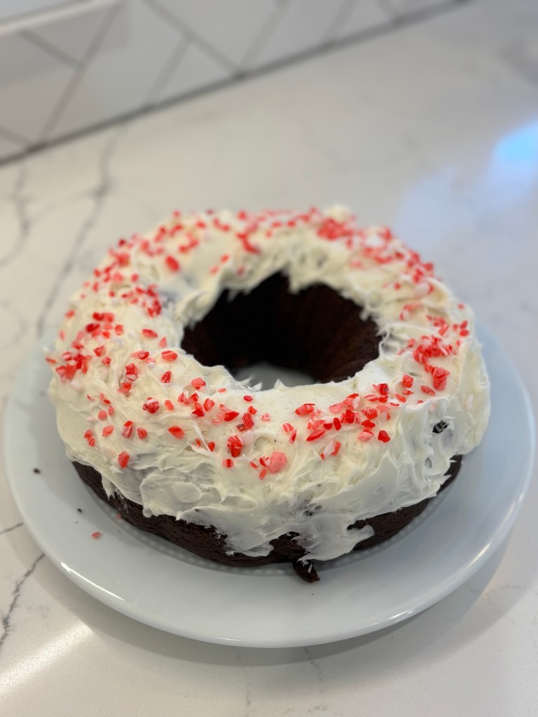Lastly, I always make Shay’s peppermint Bundt cake for Christmas, and the past couple of years I’ve made it to share with my KC family. Last year, I baked the cake in KC, and this year I took it to my brother’s house when we opened gifts.