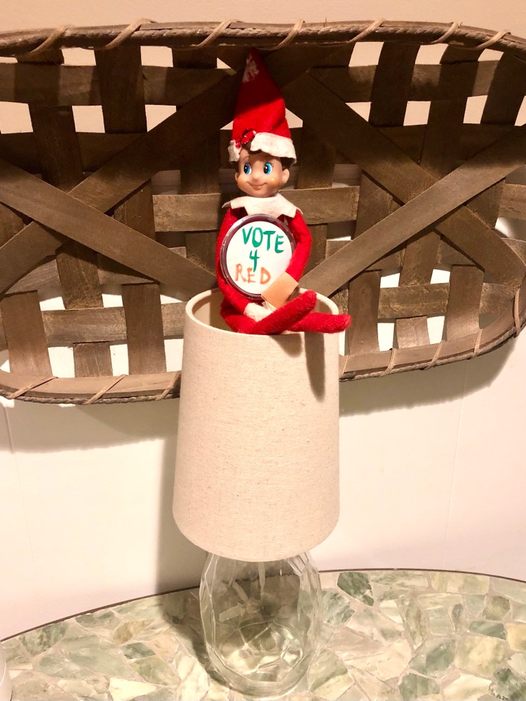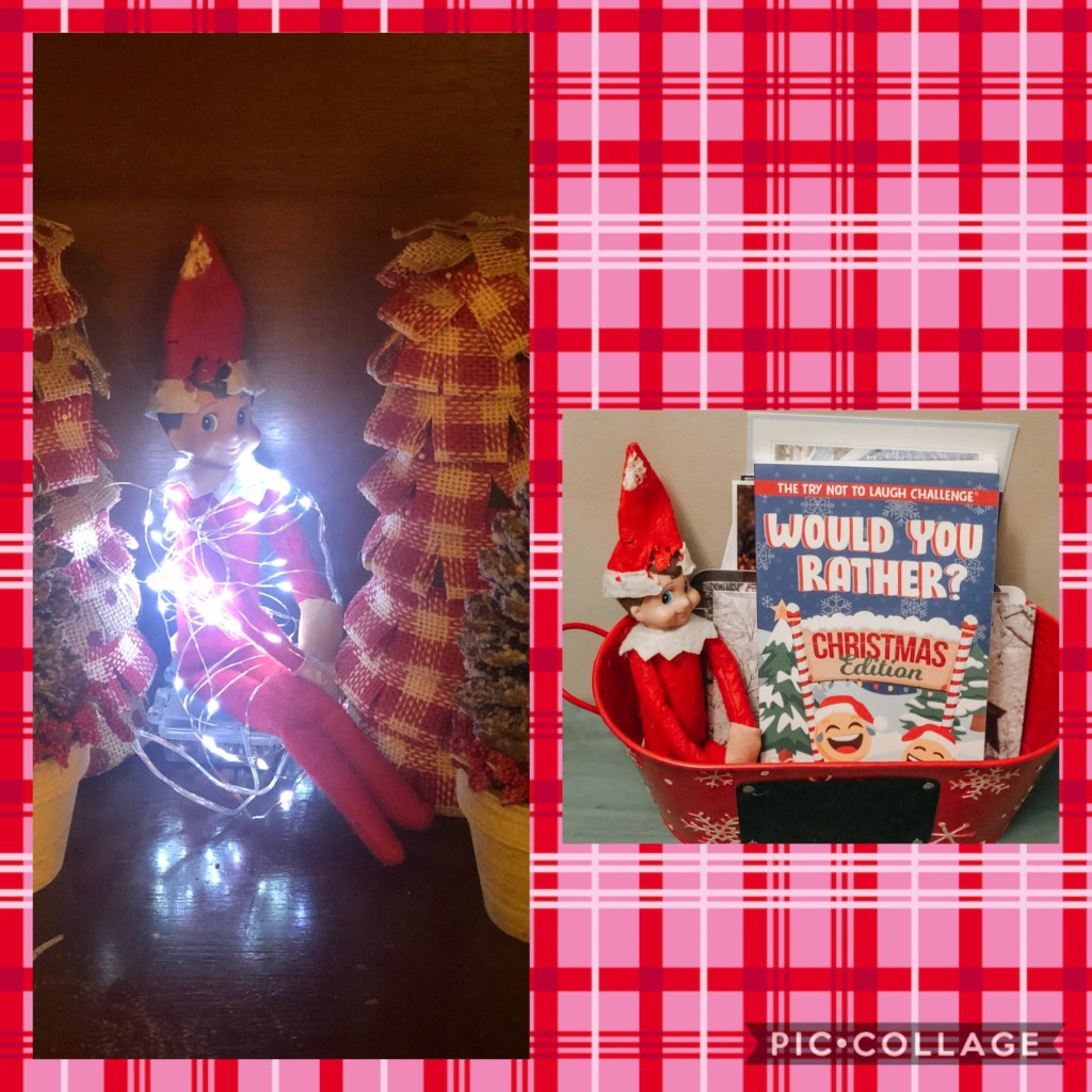 Our elf, Red, has been having a little fun: